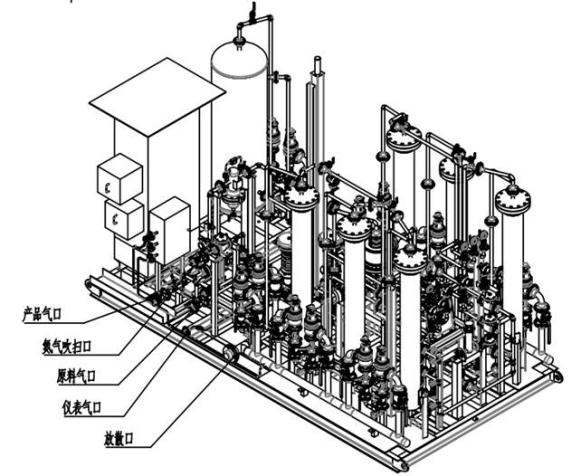 該項目采用上海優(yōu)華公司的成套撬裝旋轉(zhuǎn)閥PSA于2021年實施,提純系統(tǒng)的整體占地長*寬為4.8*2.5米。