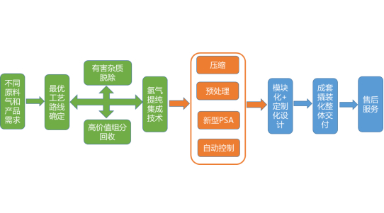 通過整合各種先進(jìn)、成熟的工藝技術(shù),選擇最優(yōu)的工藝技術(shù)路線,開發(fā)了各種先進(jìn)成熟的硬件設(shè)備、控制系統(tǒng)和嵌入式工藝技術(shù)于一體,模塊化撬裝供貨,生產(chǎn)出質(zhì)優(yōu)價(jià)廉的工業(yè)氫或氫能產(chǎn)品,滿足了不同用戶需求。
